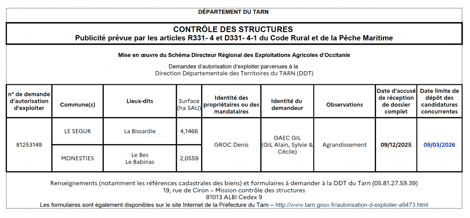 Relative à l’élaboration du Plan Local d’Urbanisme (PLU) et à l’abrogation de la Carte Communale de la commune de Monestiés par arrêté municipal n°2025-AR19 modifié le 4 octobre 2025, M. le Maire de la commune de Monestiés a ordonné l’ouverture de l’enquête publique unique sur le projet d’élaboration du PLU, procédure prescrite par délibération du conseil municipal du 22 janvier 2018, en vue de son approbation par le conseil municipal ainsi que sur le projet d’abrogation de la Carte Communale de la commune de Monestiés.